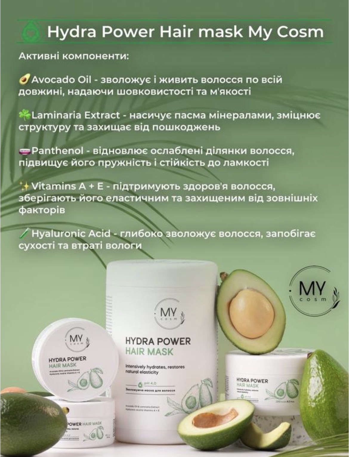 Маска Авокадо 🥑 від My cosmetics - для інтенсивного зволоження волосся 🌱