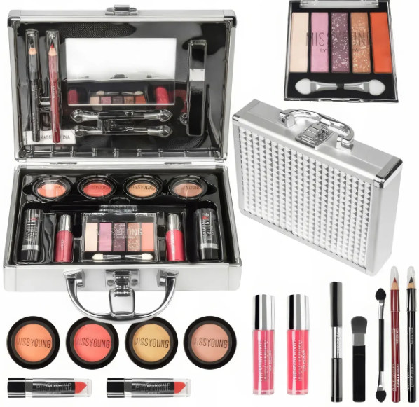 - Широкий вибір косметики – у наборі представлено багато відтінків тіней, рум'ян, помад і блисків, що дозволяє експериментувати з макіяжем.
